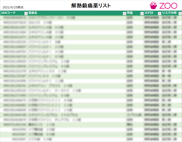 解熱鎮痛薬リストのダウンロード
