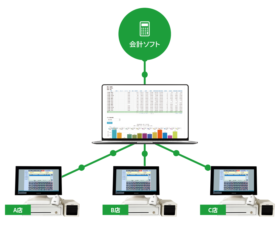 ご導入の会計ソフトにデータを出力することもできるので、店舗と本部の事務作業を軽減することができます。