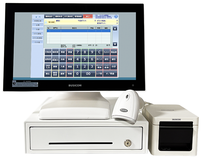 GPOS justは、NSIPSに対応したあらゆるレセコンと連動することによって、処方会計情報を共有して簡単に呼び出しが可能です。OTC医薬品を始めとした物販の管理はもちろんのこと、OTC医薬品と処方箋を同時会計した際には飲み合わせのチェックも行える、薬局専用のPOSレジです。