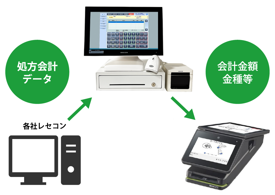 レセコンからの会計金額は「GPOS just」を介して「stera terminal」へ送信されるので、二度打ちのない、正確な決済が可能になります。