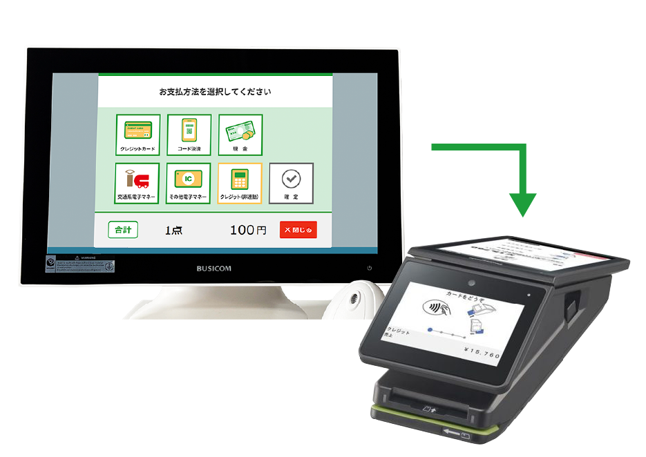 「stera terminal」との連動で、現金はもとより各種カード決済、電子マネー決済、コード決済による会計が使用可能となります。
