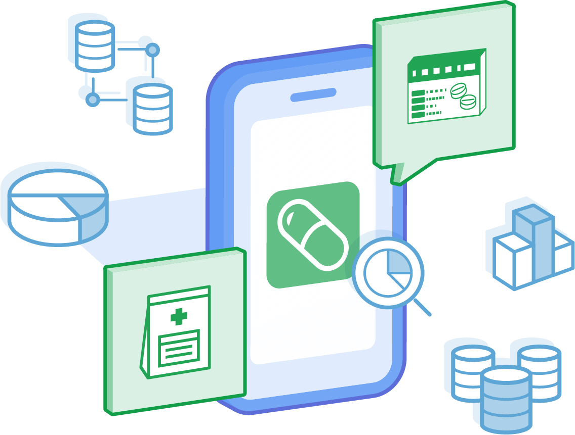 医療用医薬品とOTC医薬品のデータをどちらも扱っていますので、まとめて電子お薬手帳に実装することができます。